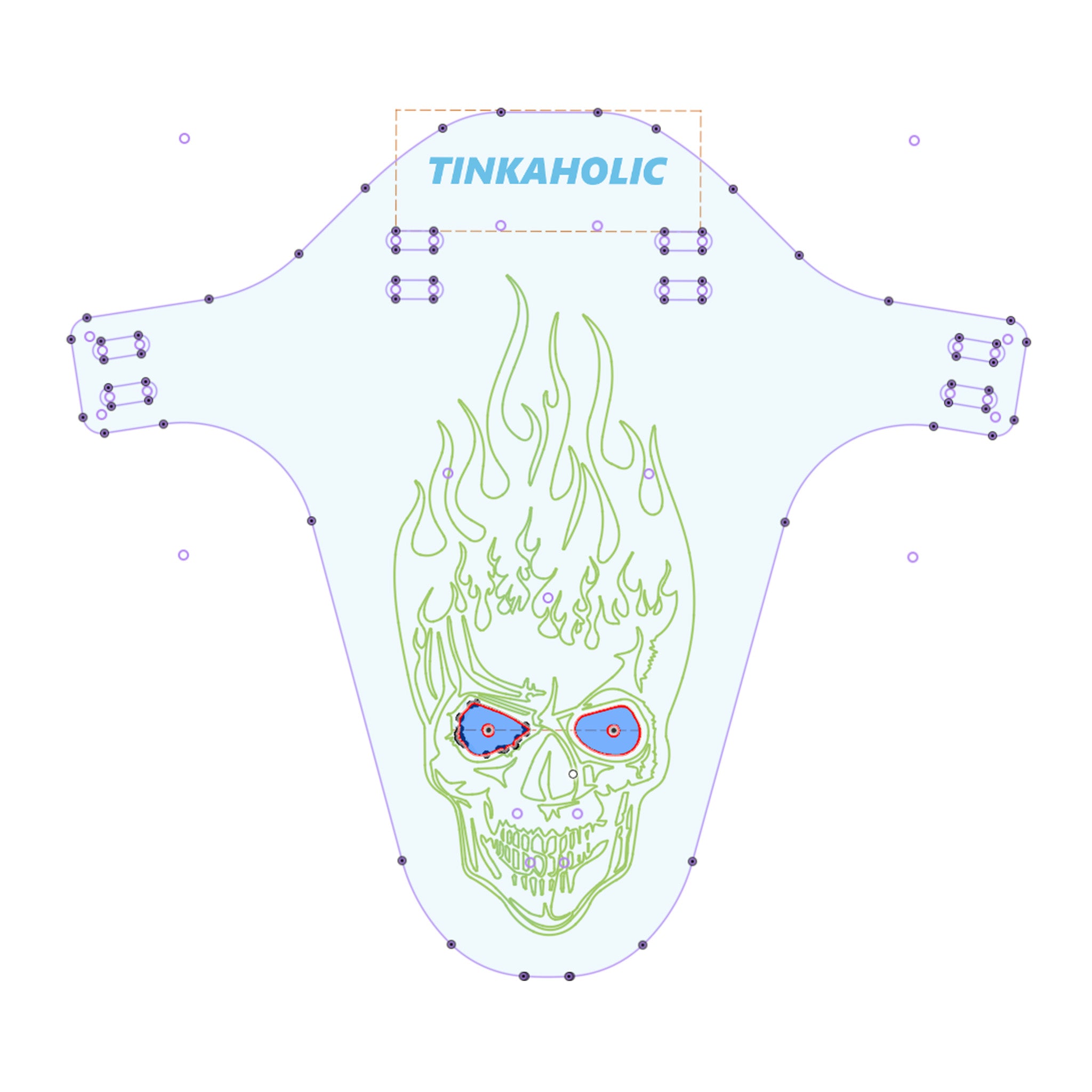 You can see in the image on the right that the skull is an outline and we have selected it's eyes (in blue) to be extruded a different color. (If the shape is not enclosed we can't select it).