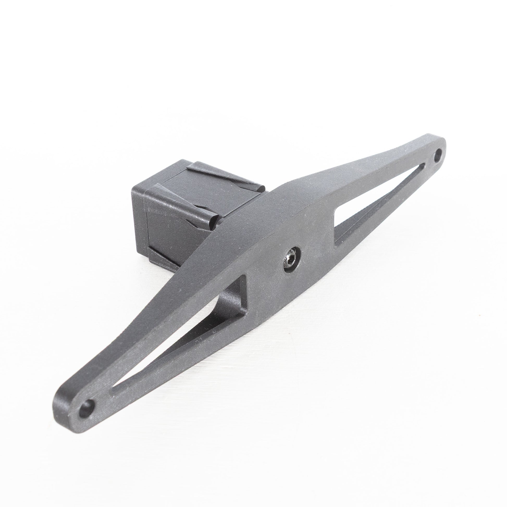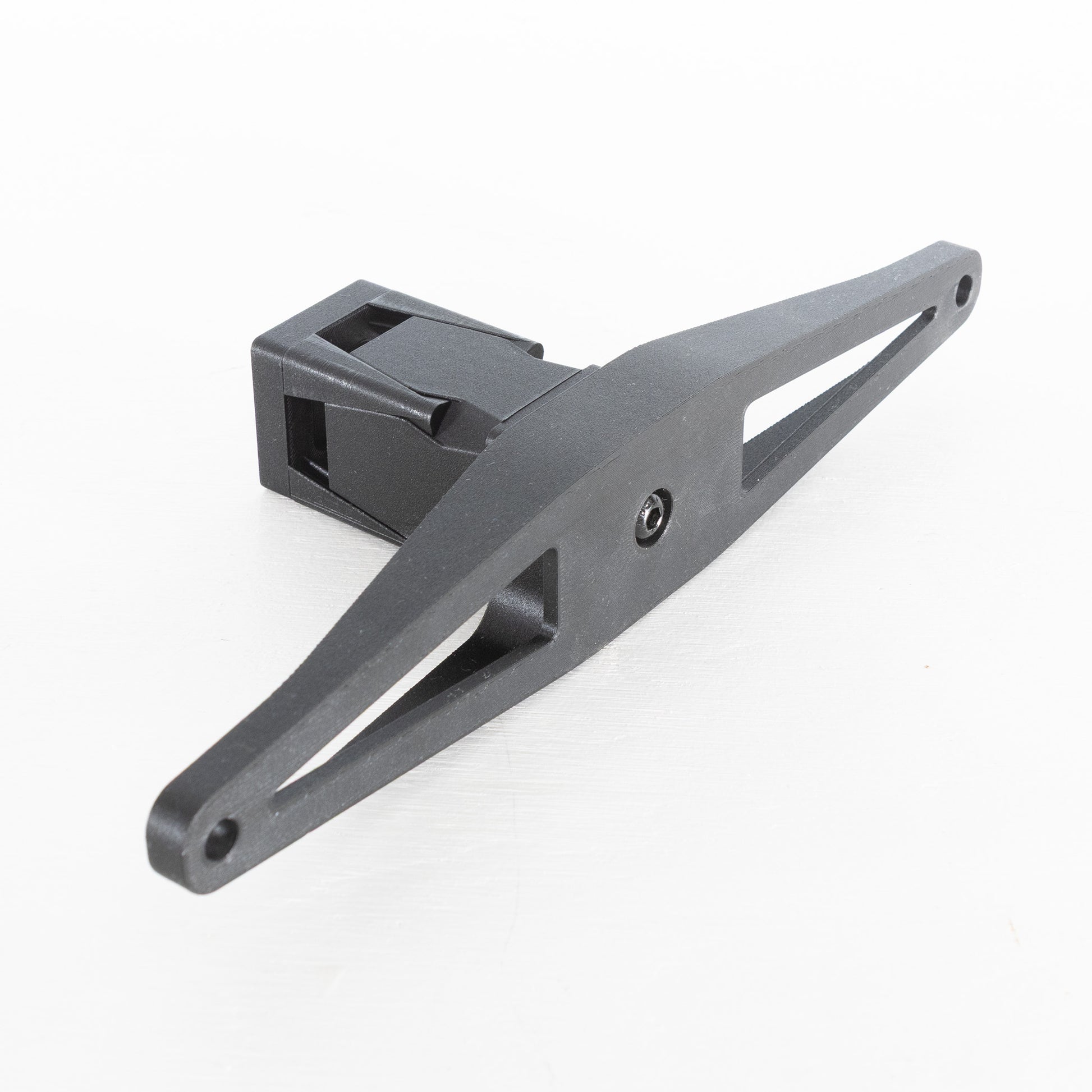 The bracket is made of PETG CF, weighs 84 grams and takes 2.5 hours to print.